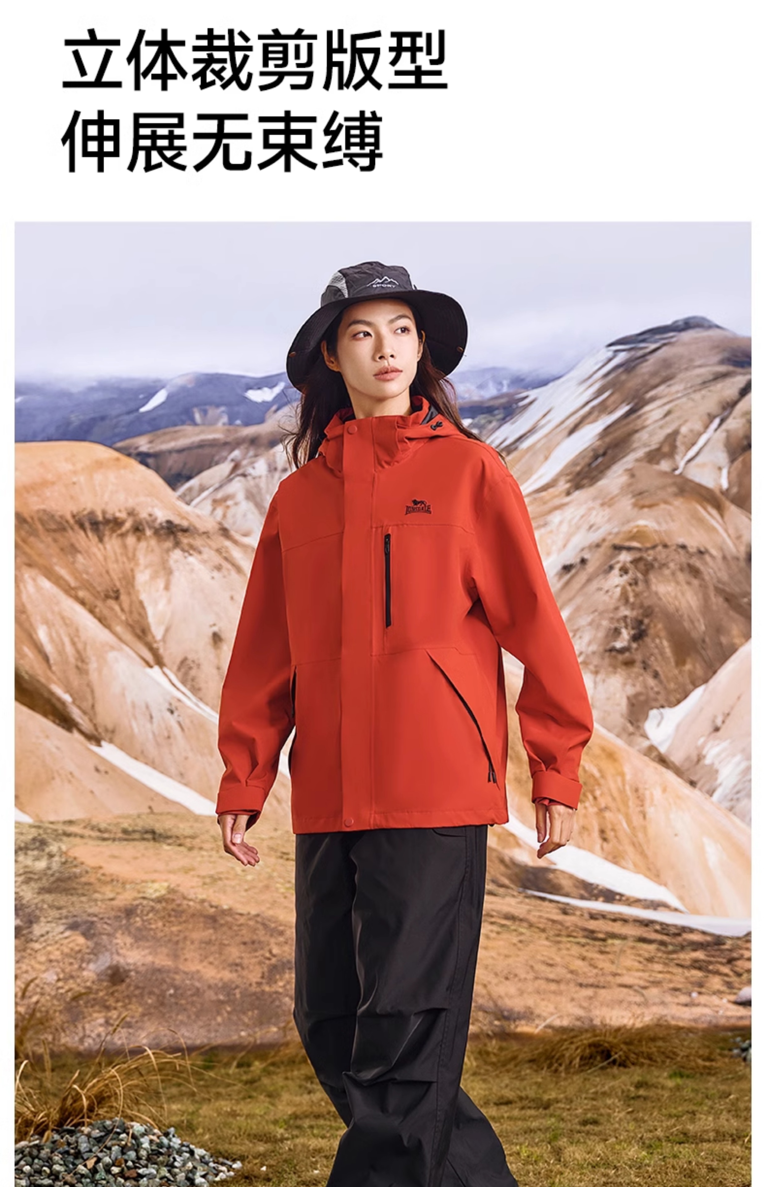 【朱雀红】龙狮戴尔冲锋衣户外三合一女可拆卸新款防风防水外套男