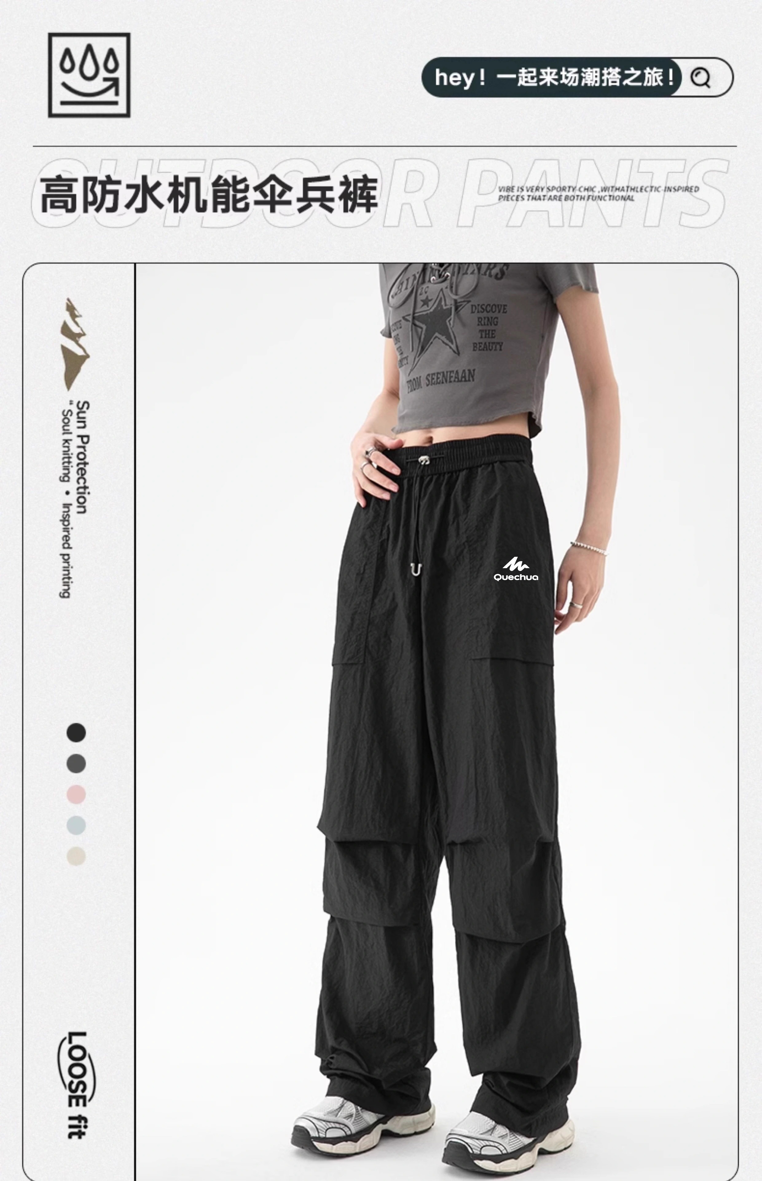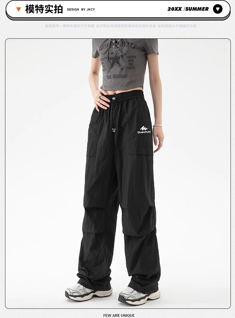 迪卡侬冰丝冲锋裤女款夏季户外登山垂感伞兵裤速干防晒运动工装裤