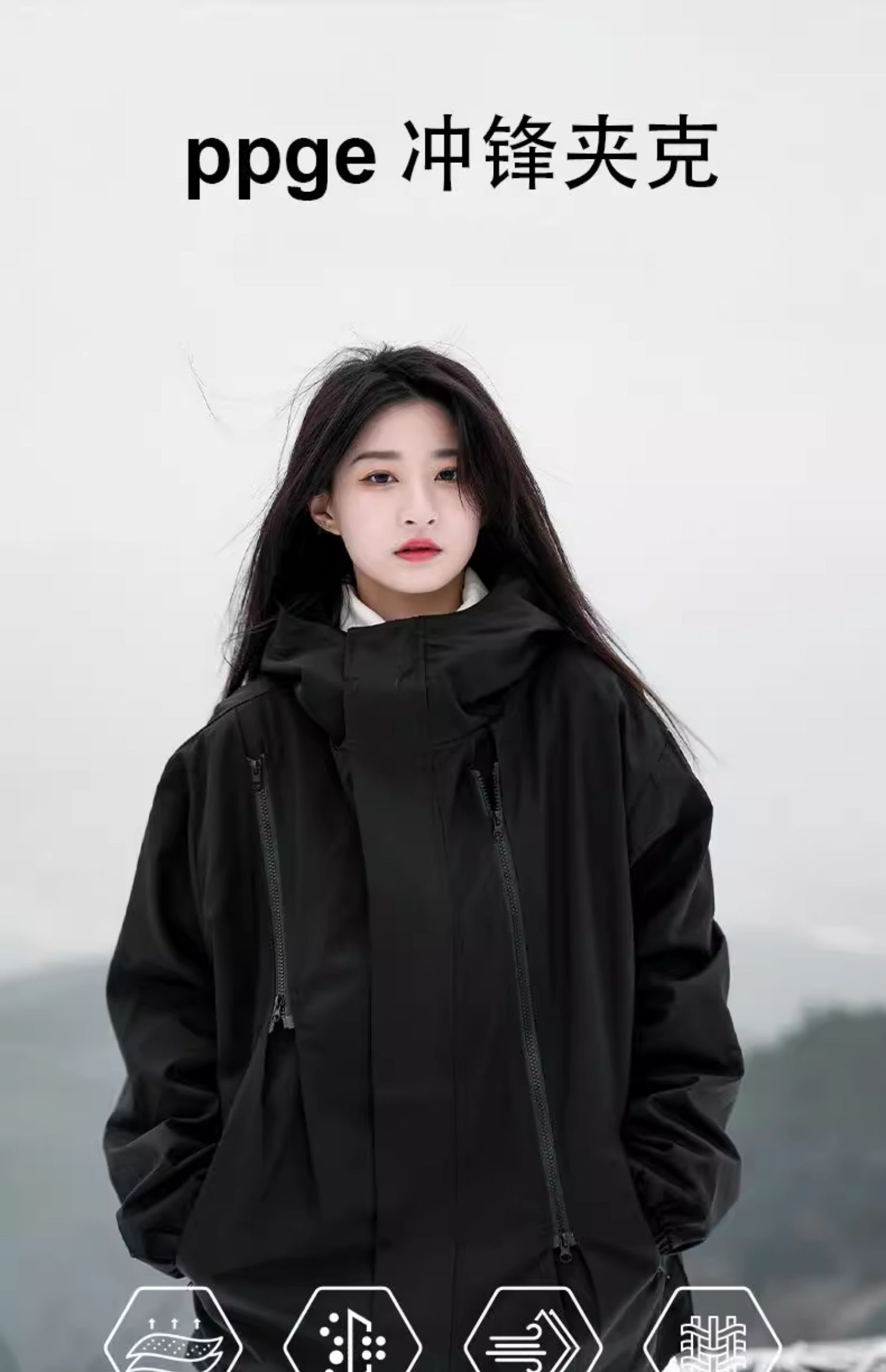 ppge冲锋夹克上衣春秋新款户外运动防水登山服拉链情侣大码外套