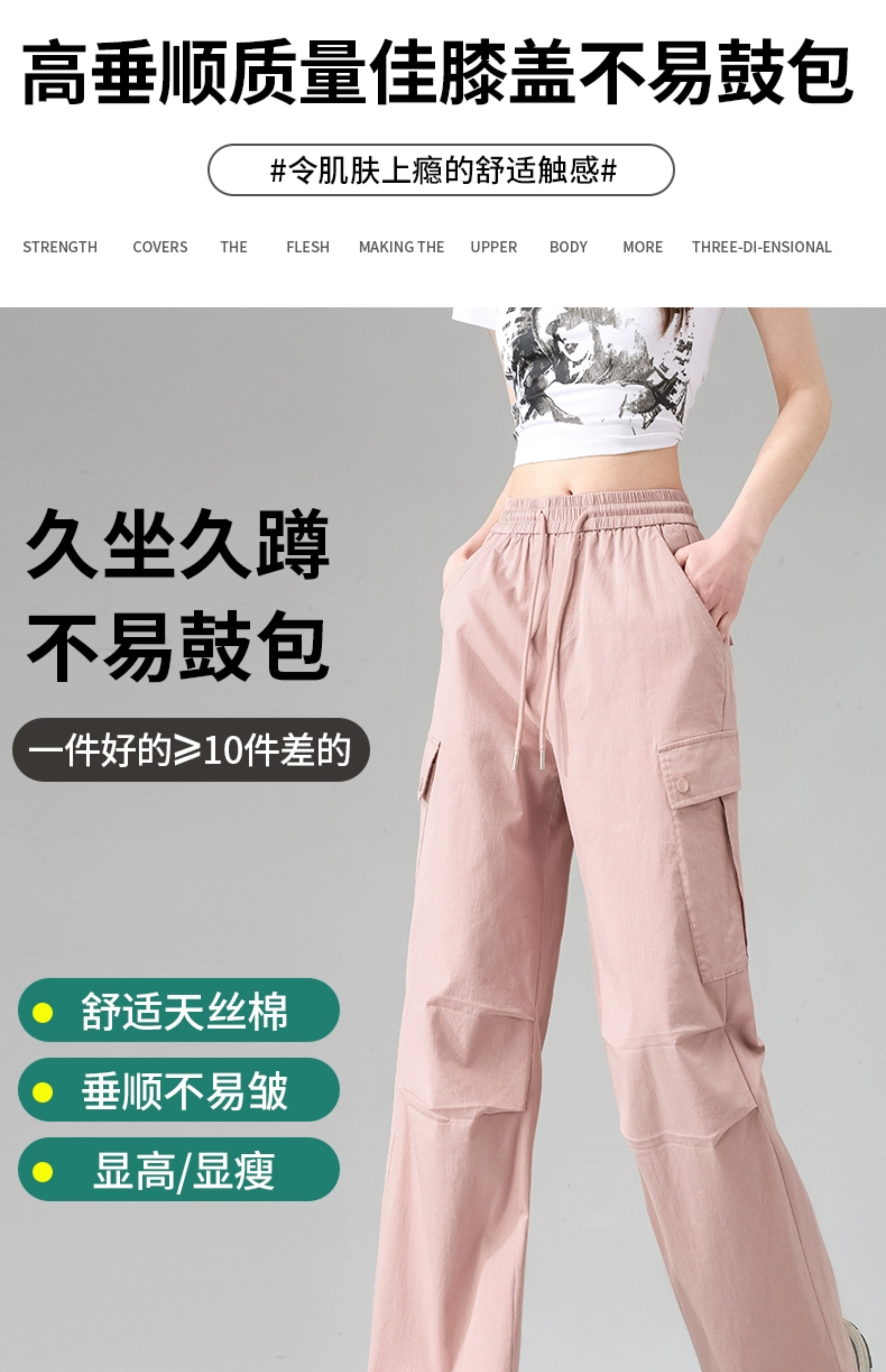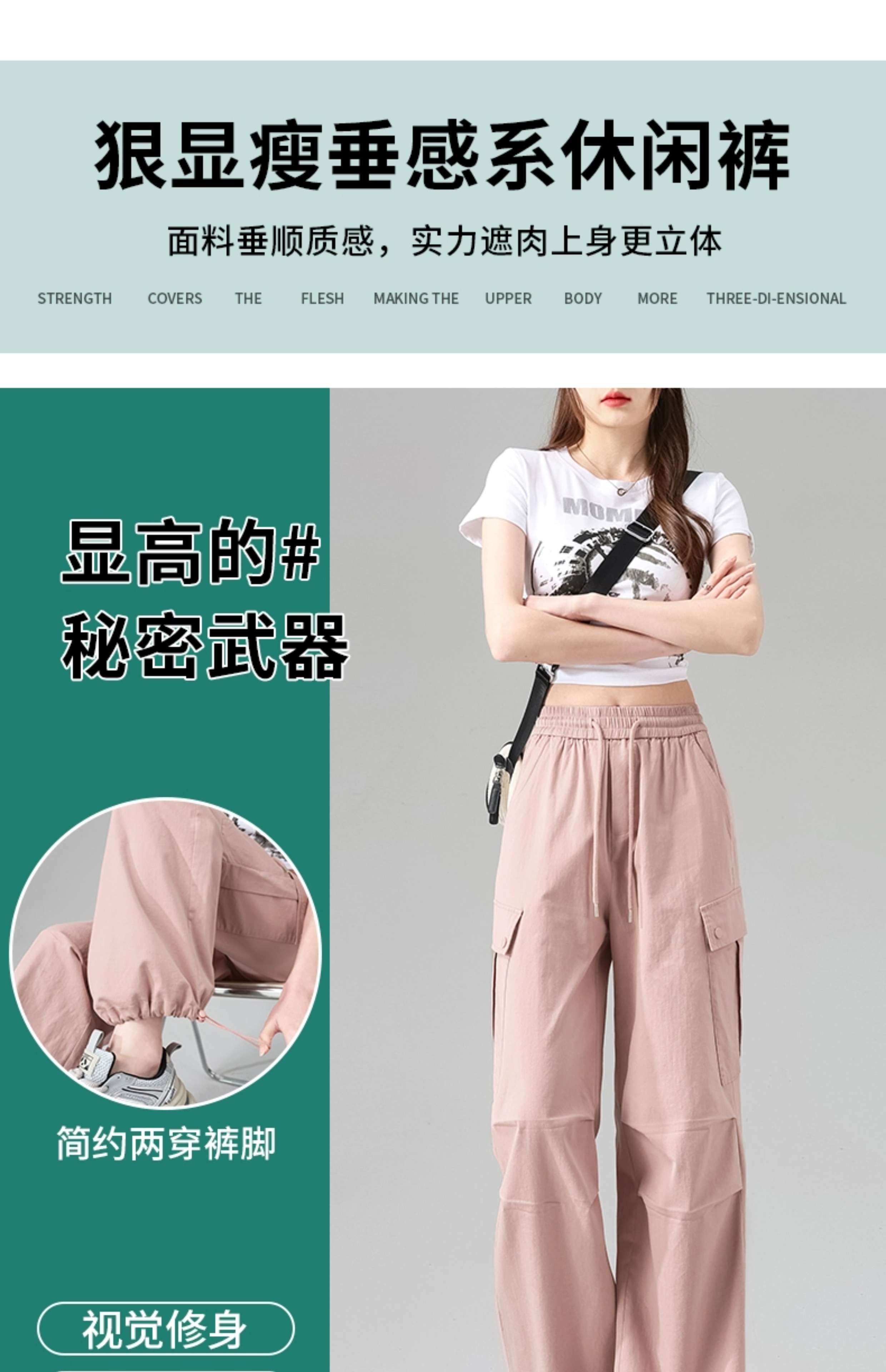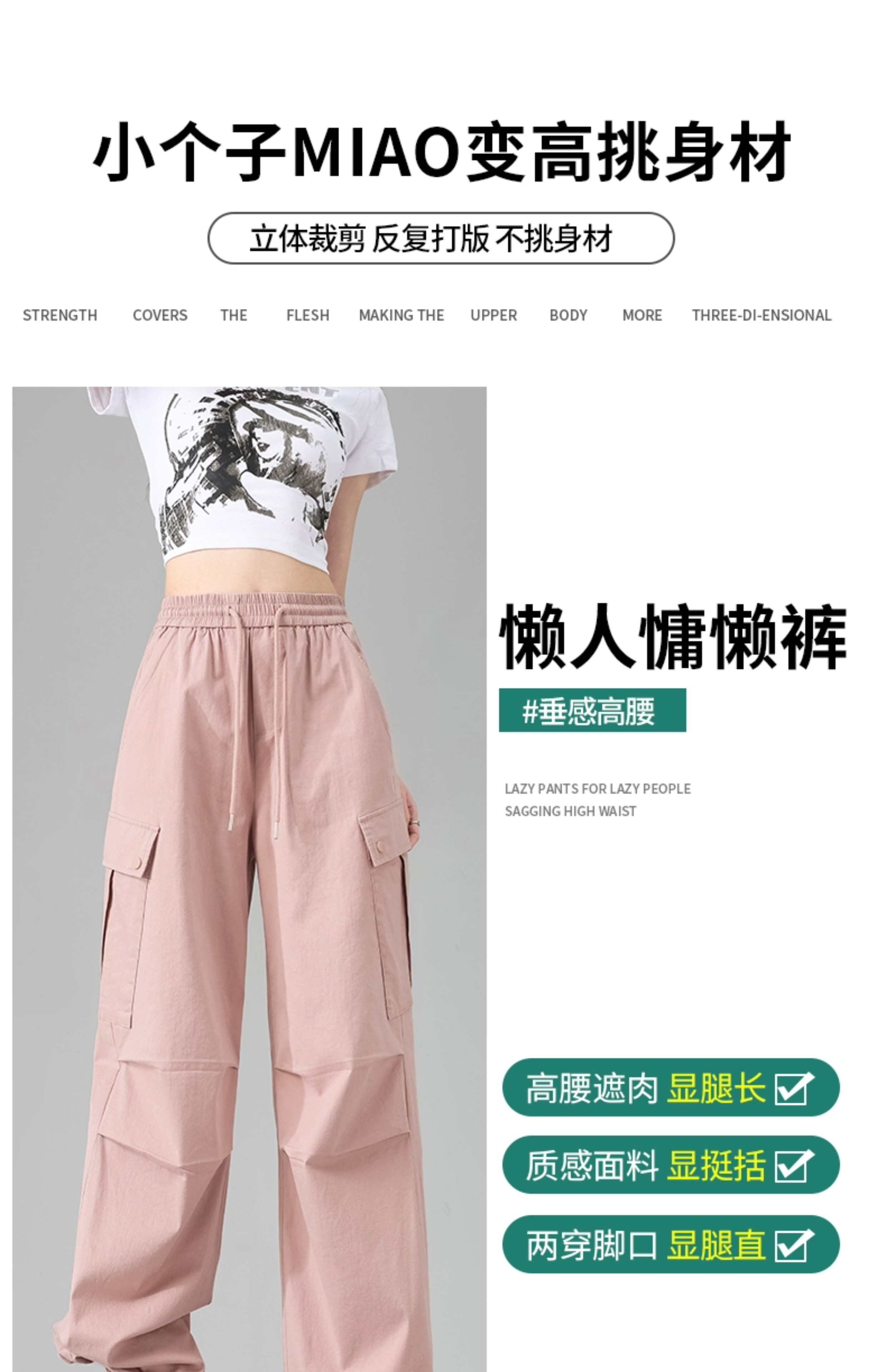 粉色工装裤女款直筒设计感美式复古休闲日系阔腿夏季高腰速干裤子