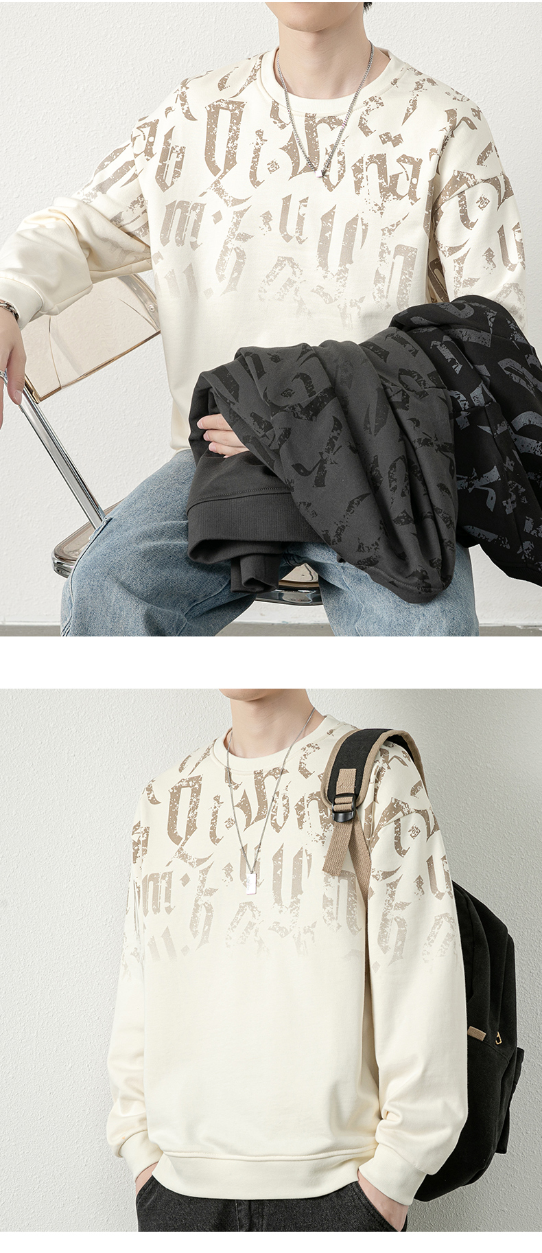 KZH真维斯美式男士卫衣春秋新款宽松百搭打底衫潮牌圆领休闲上衣