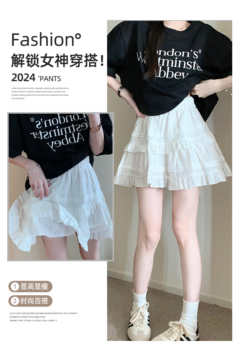 白色蕾丝短裙女春秋夏2025年新款芭蕾风蛋糕裙高腰a字蓬蓬半身裙