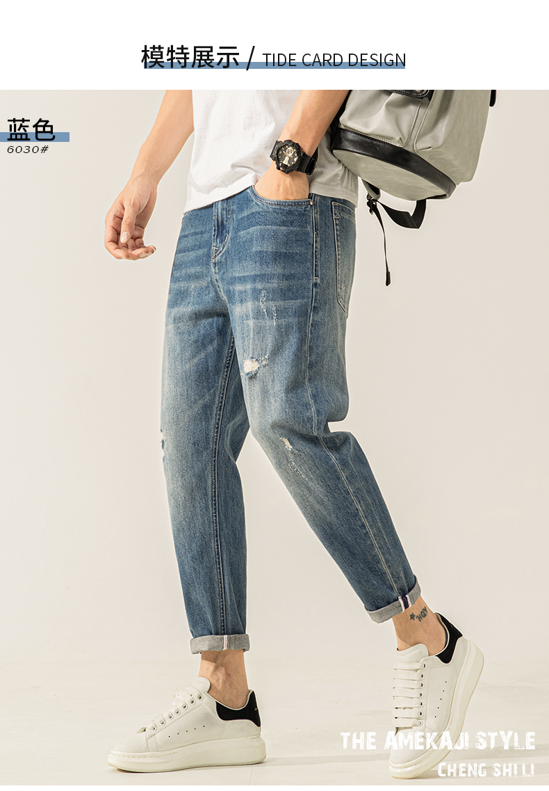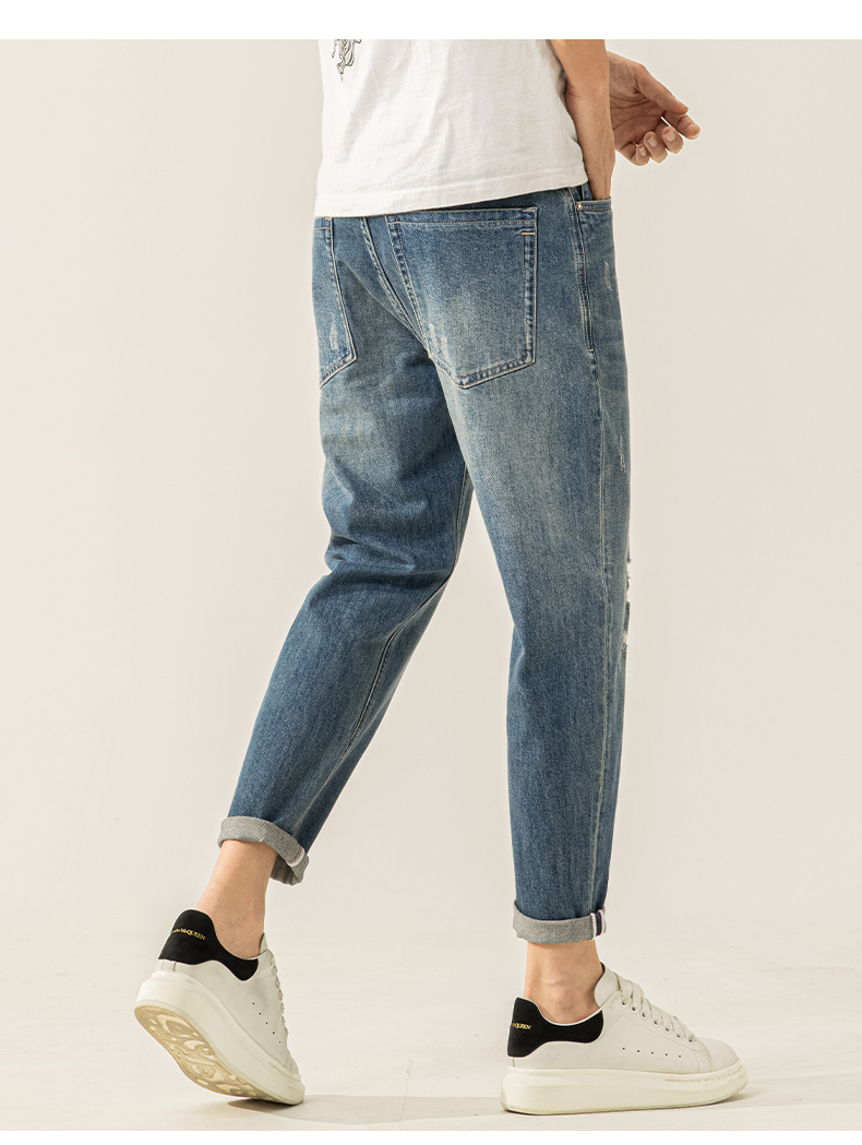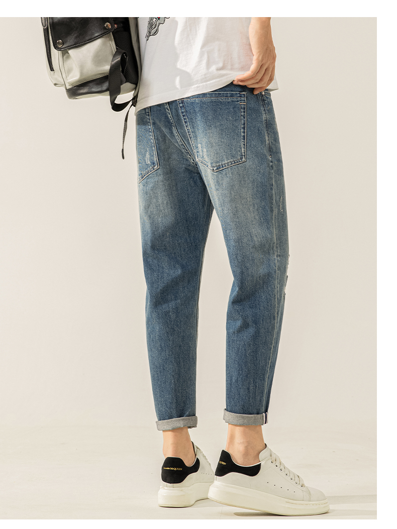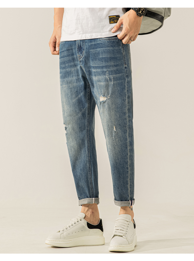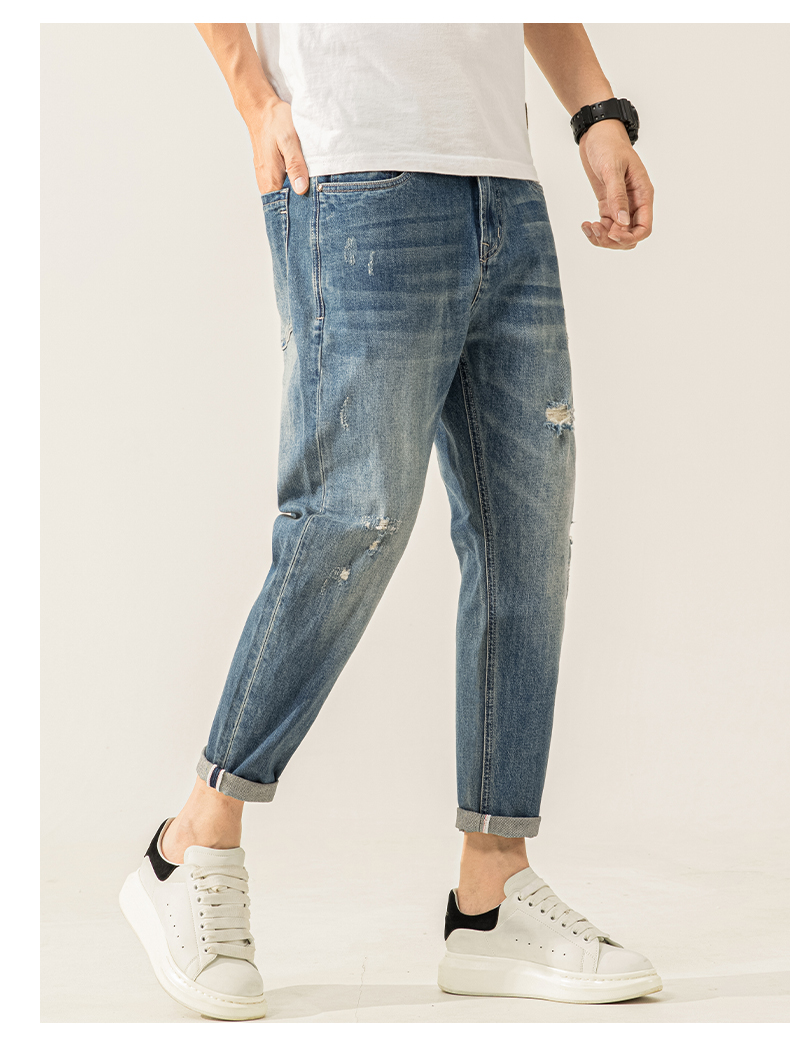 高端牛仔裤男士2025新款夏季薄款男裤修身小脚9九分裤子男款春秋