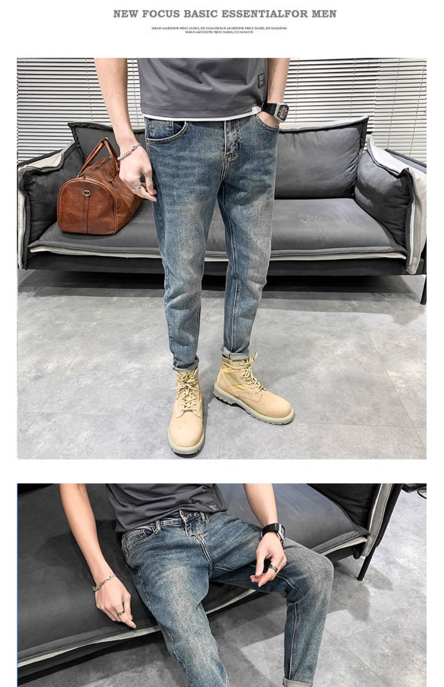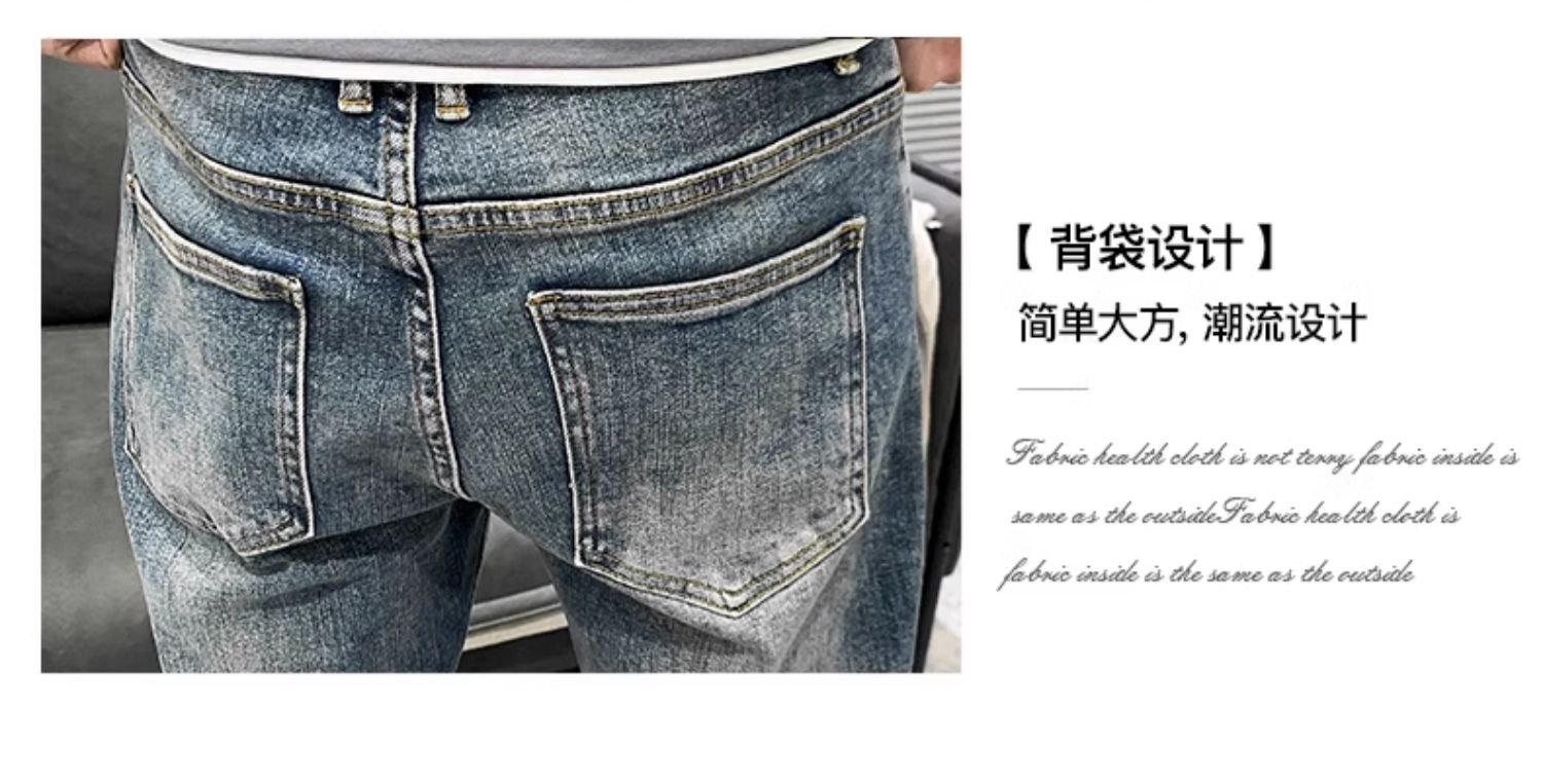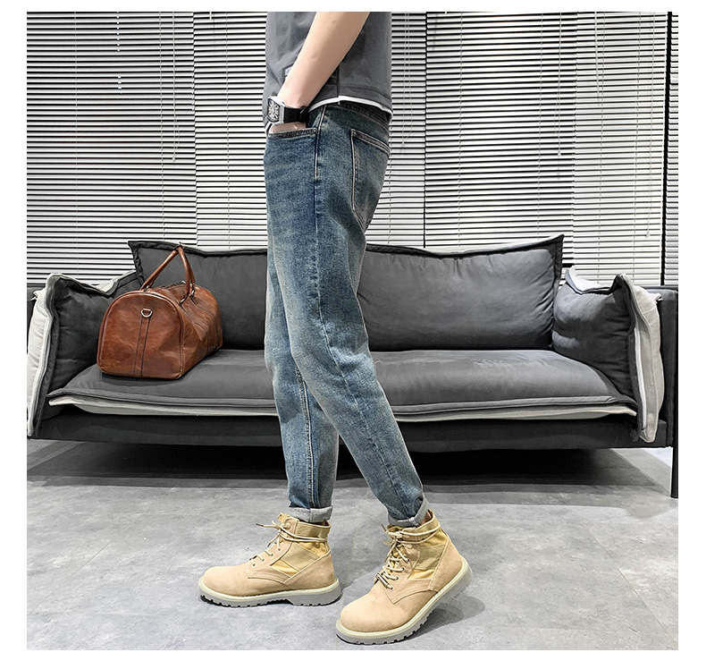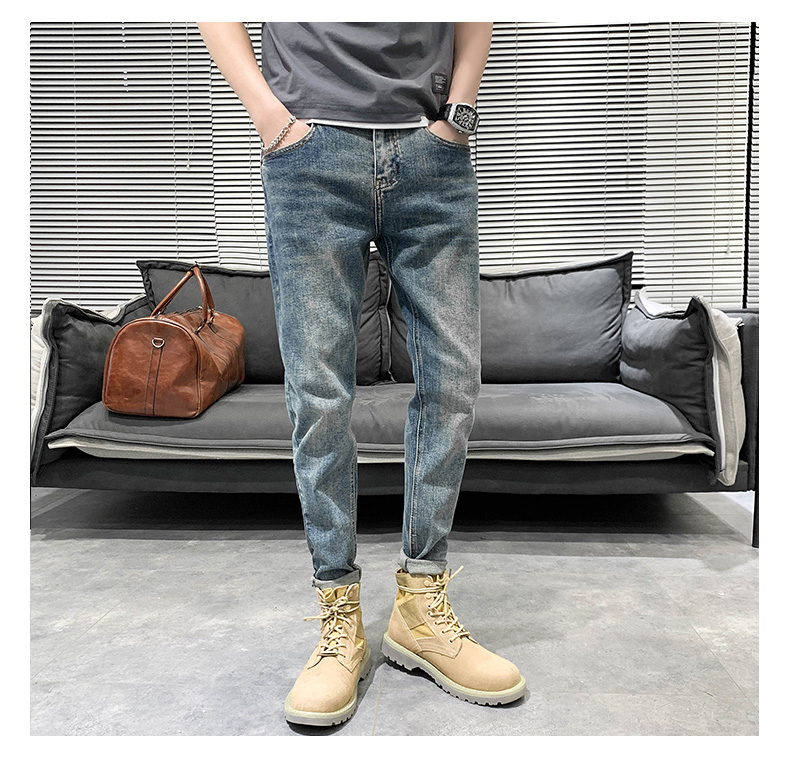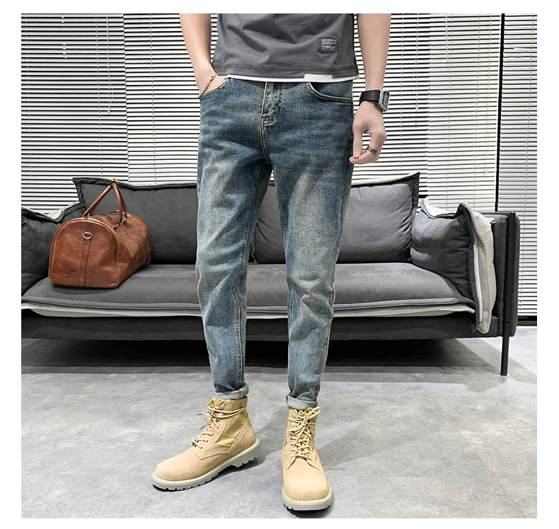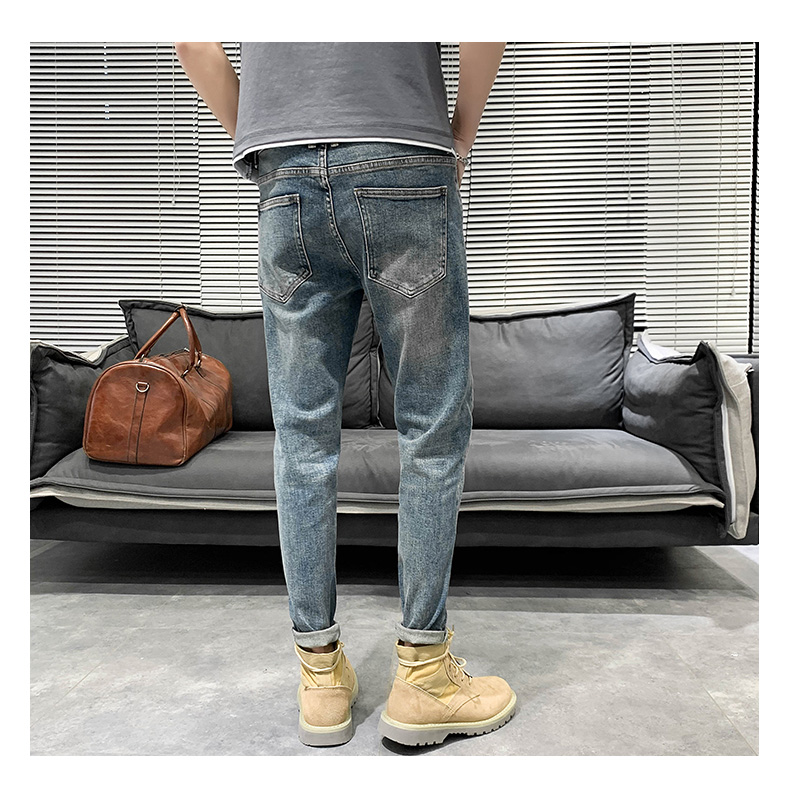 浅色牛仔裤男士夏季宽松九分休闲修身9分长裤子潮小脚弹力款潮流