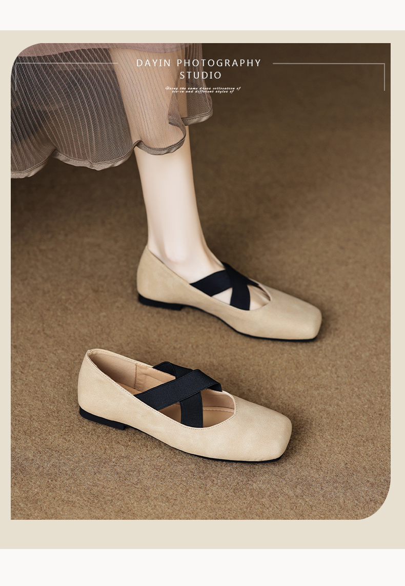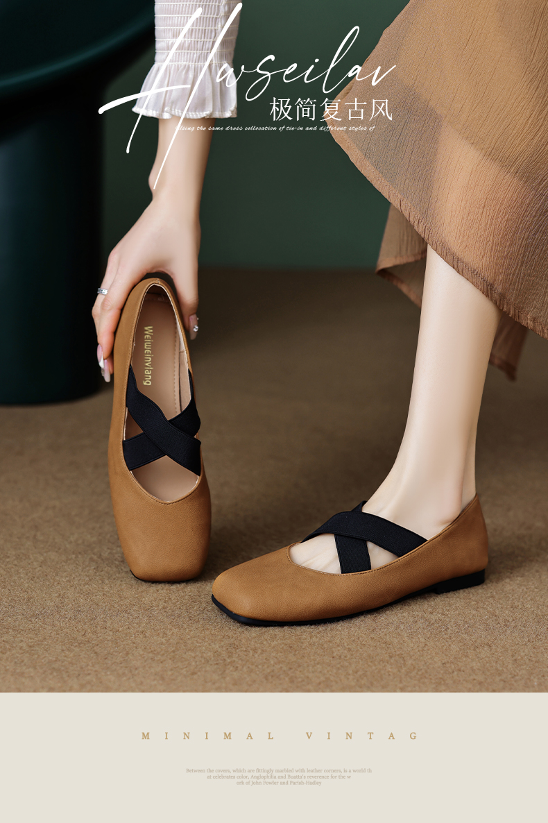 羊皮版~超软豆豆鞋女春夏浅口复古交叉绑带芭蕾舞鞋平底大码单鞋