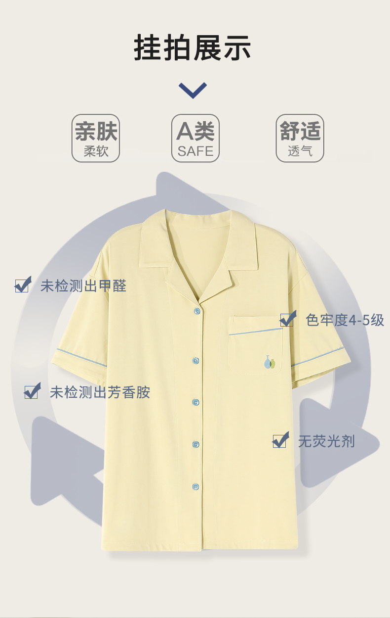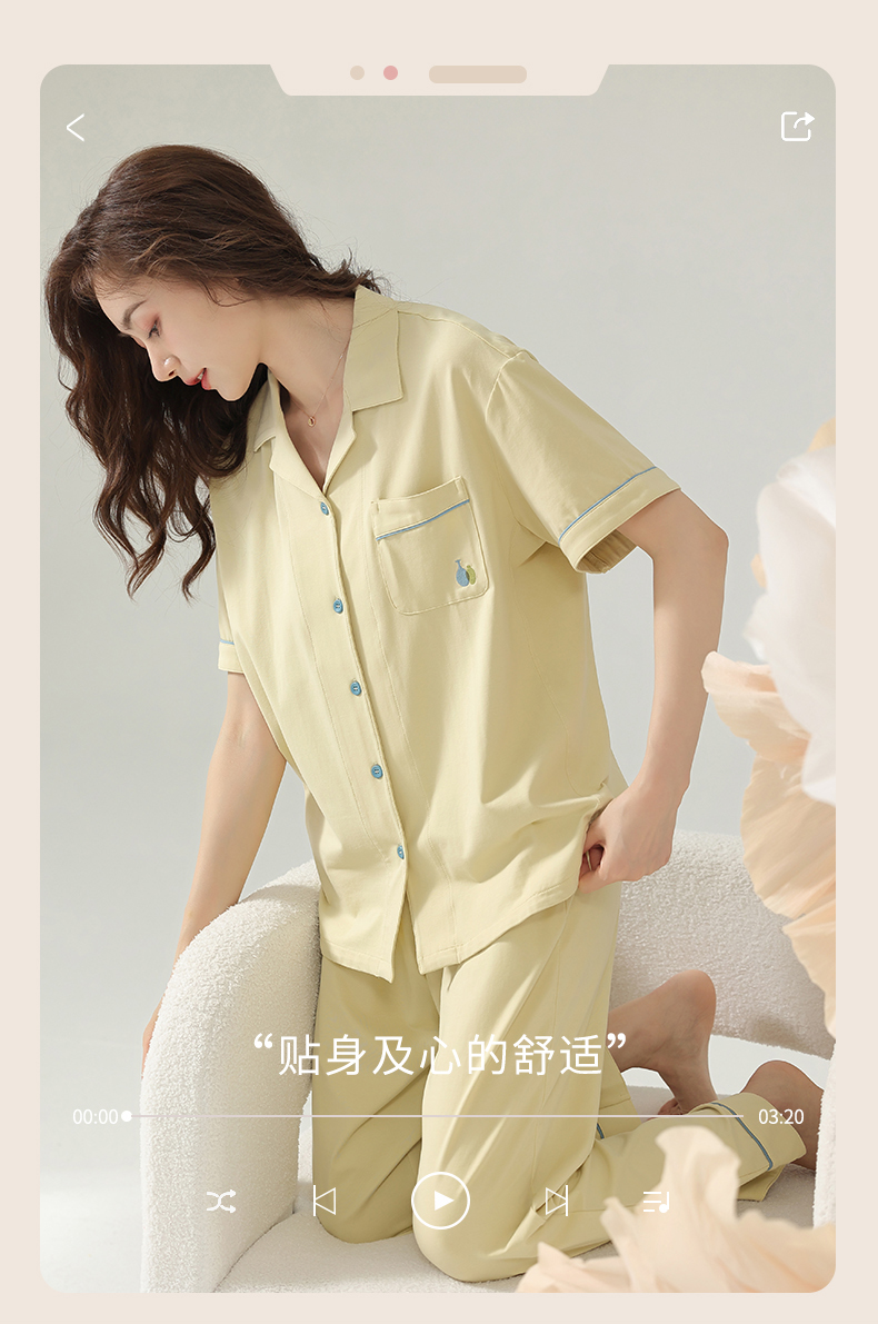 夏天芬腾睡衣女夏季纯棉短袖长裤薄款开衫简约休闲家居服夏款套装