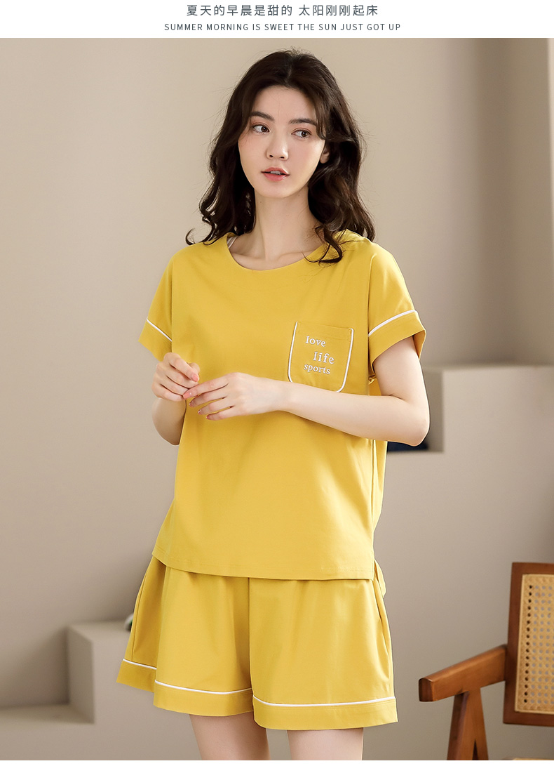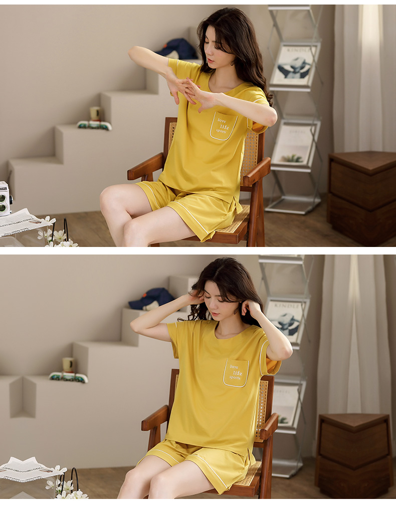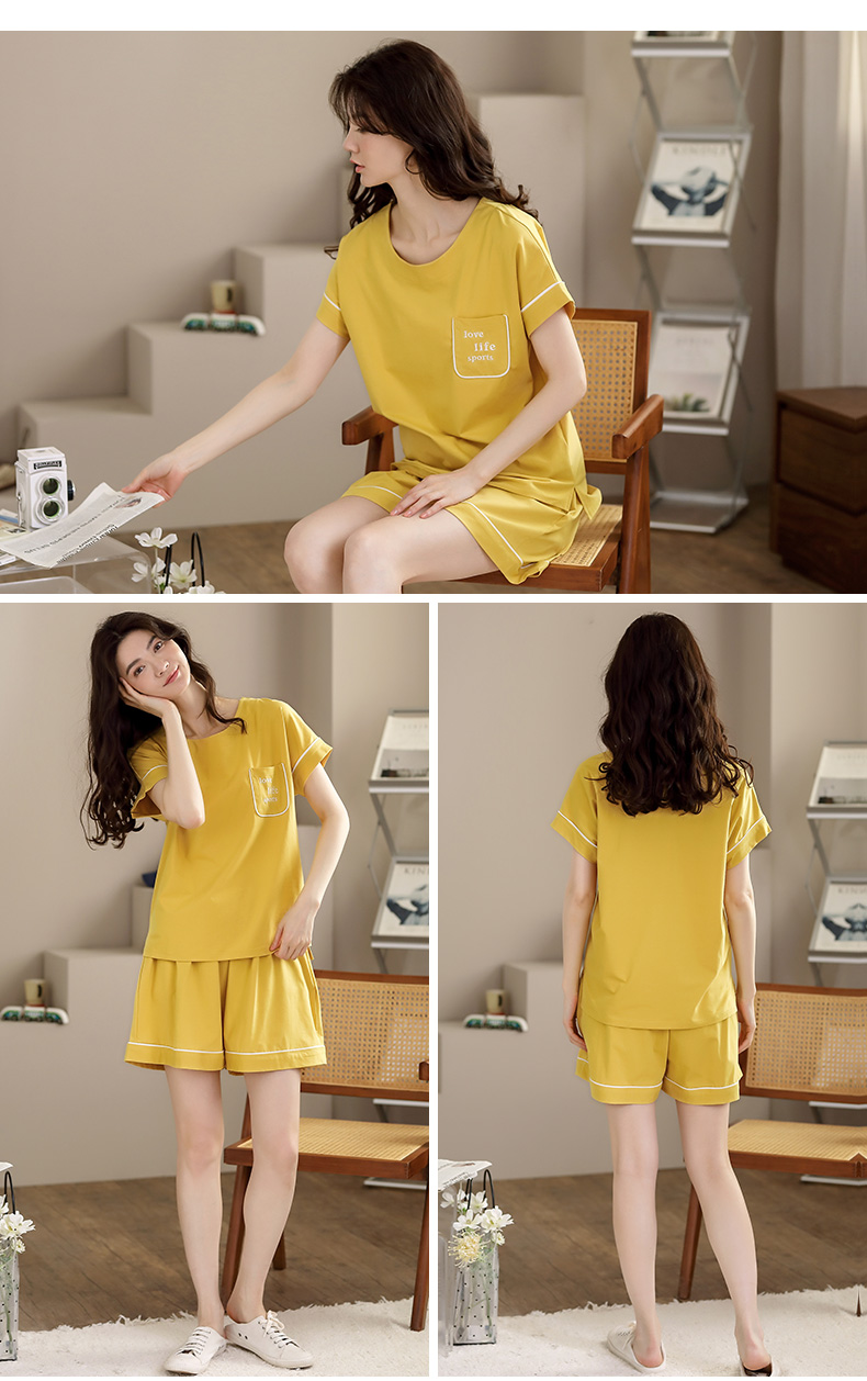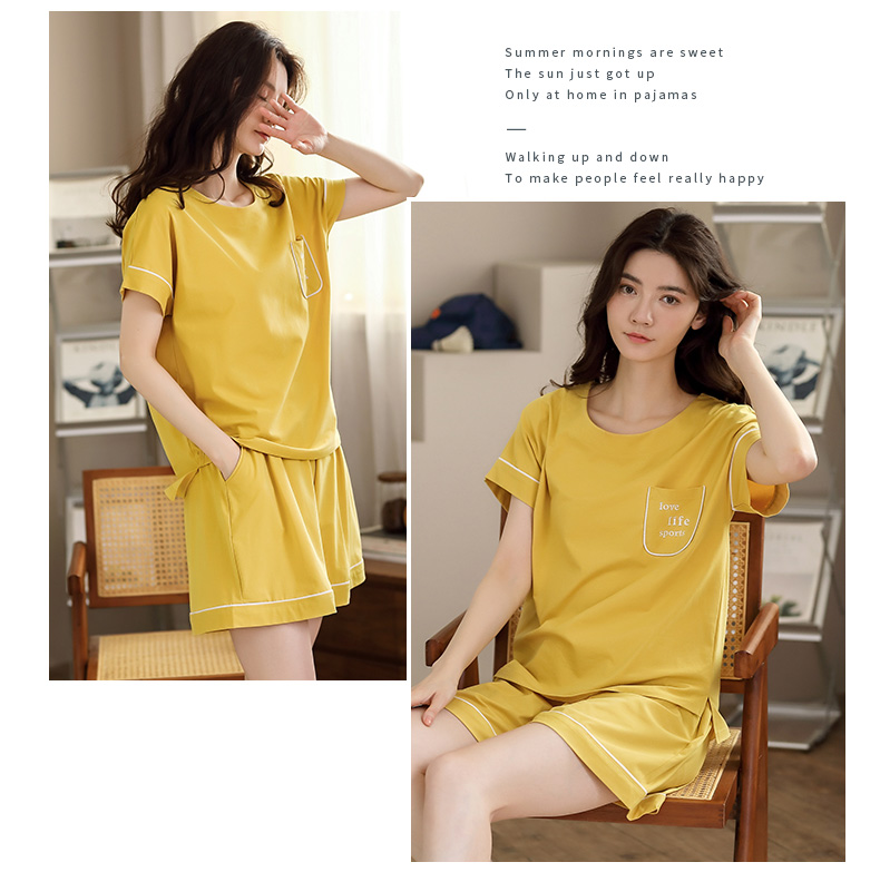 帕兰朵睡衣女夏季纯棉薄款短袖短裤运动家居服两件套装夏款可外穿