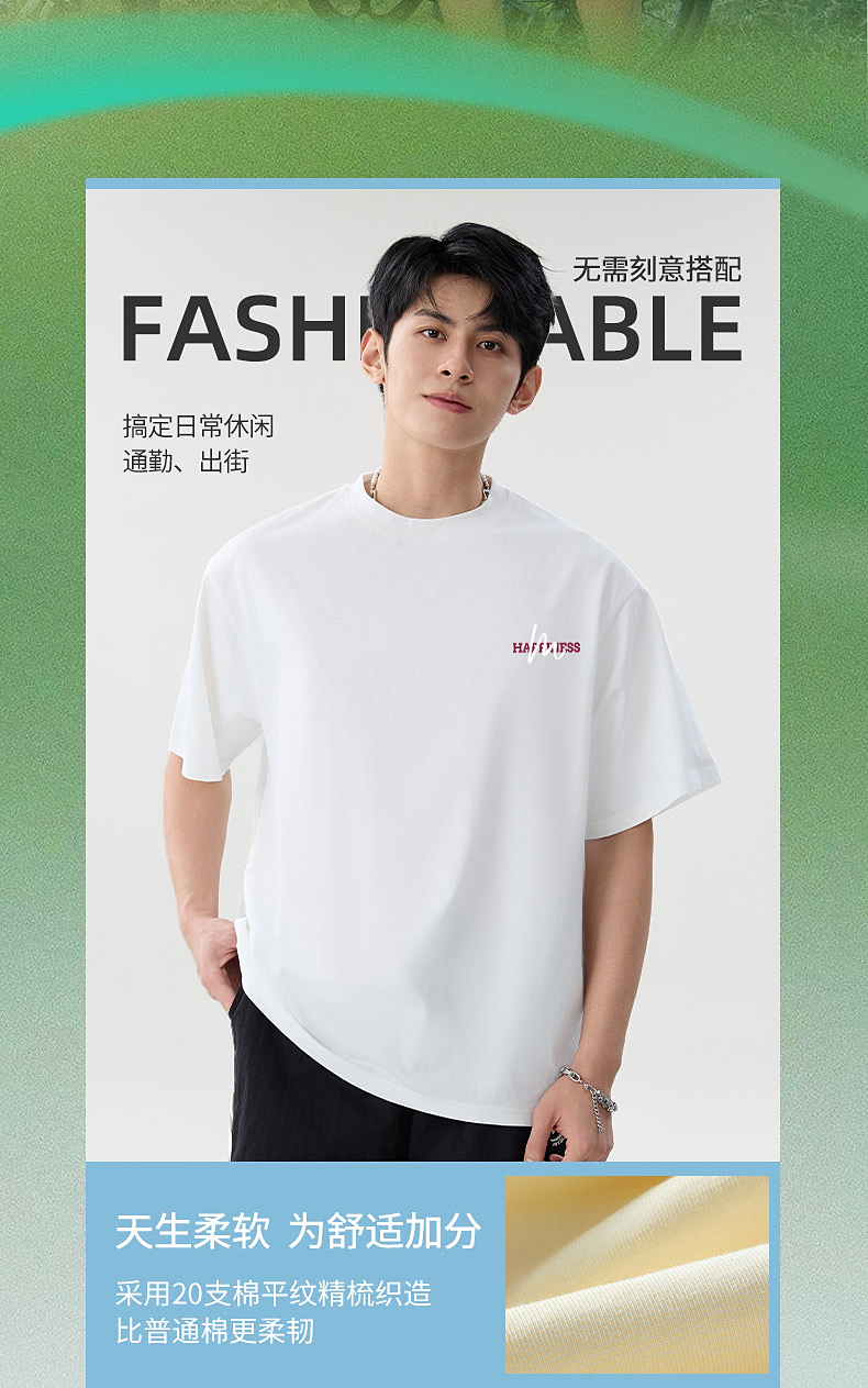 班尼路S&K系列重磅纯棉短袖男款夏季青少年绿色上衣半袖t恤男生A