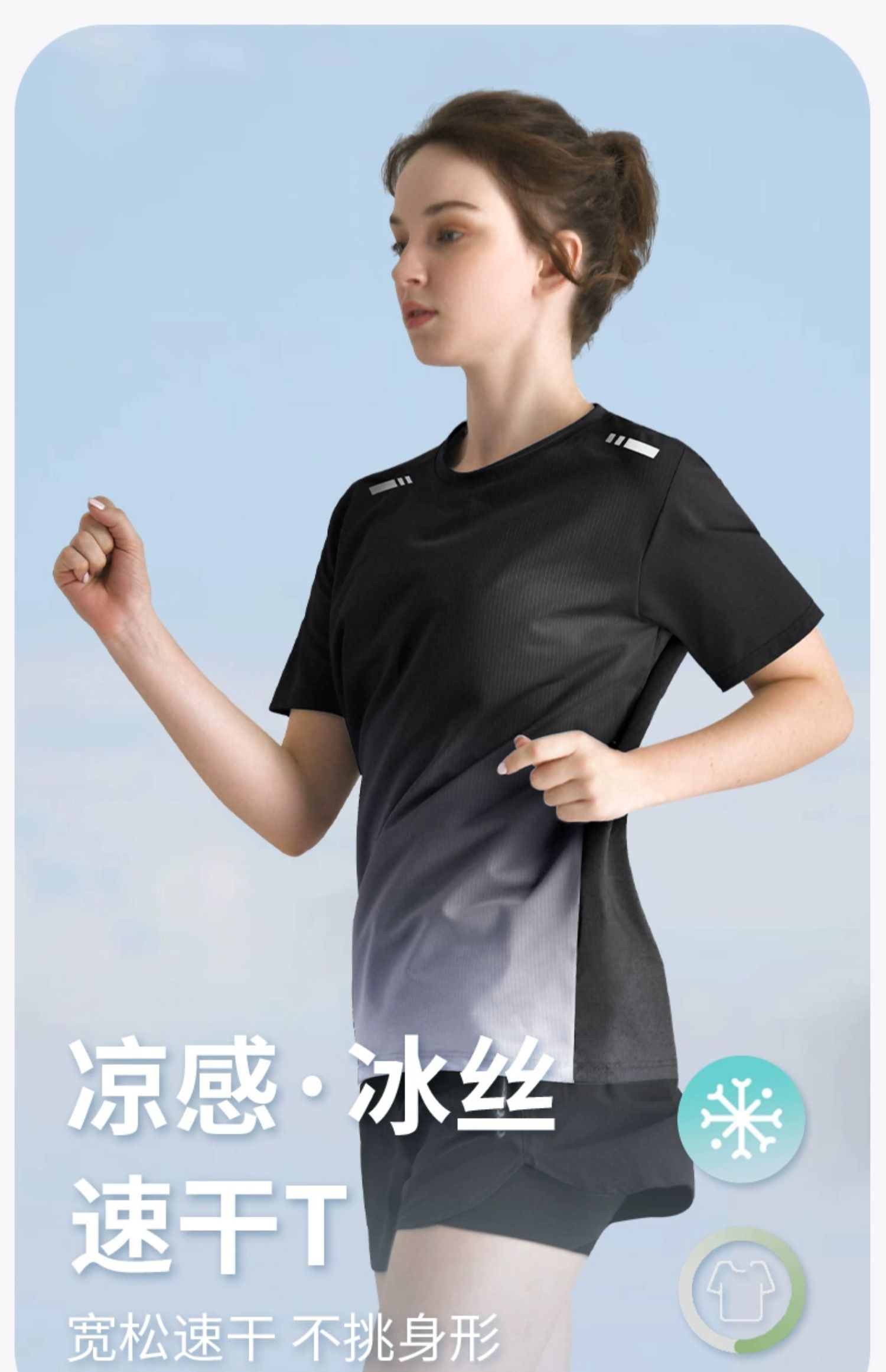 速干衣女短袖运动t恤宽松夏季冰丝瑜伽健身训练跑步大码登山上衣