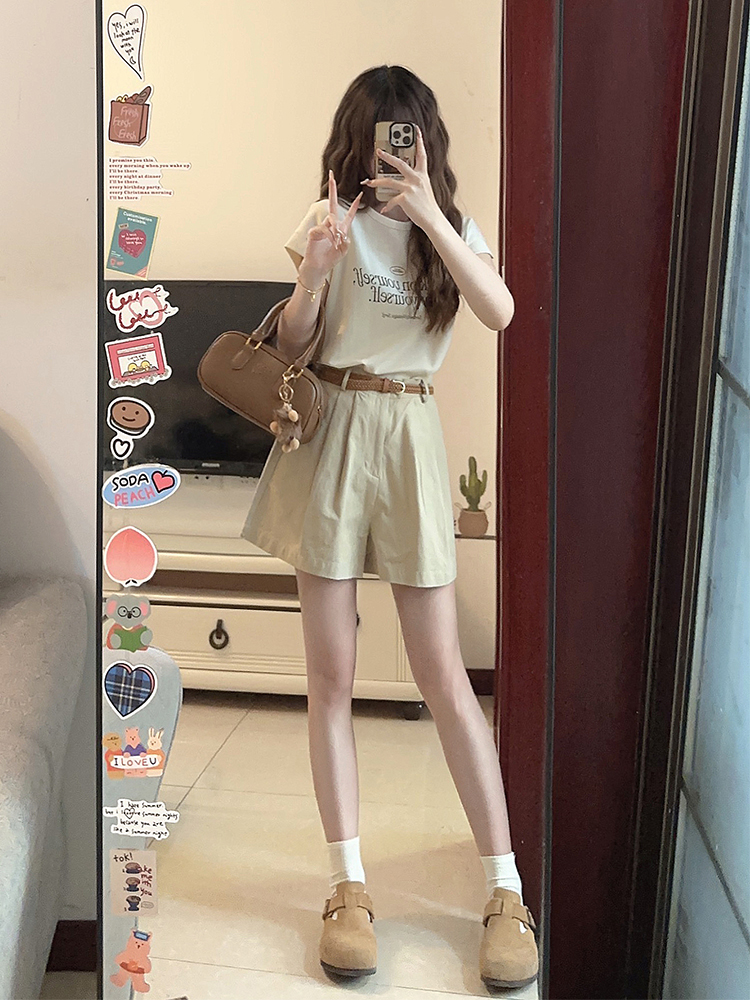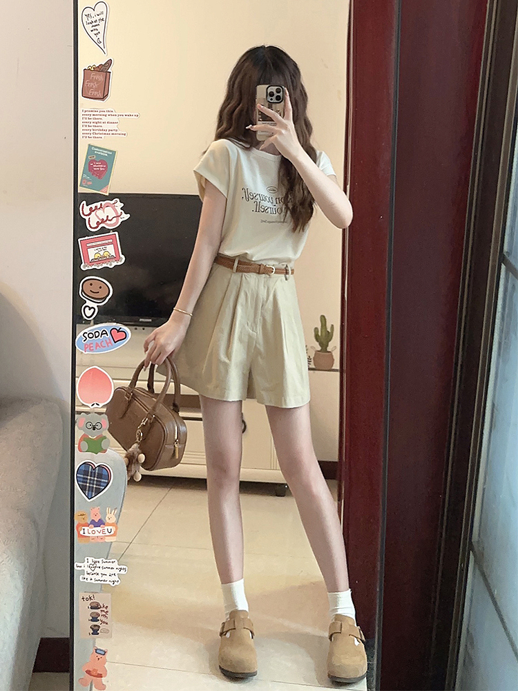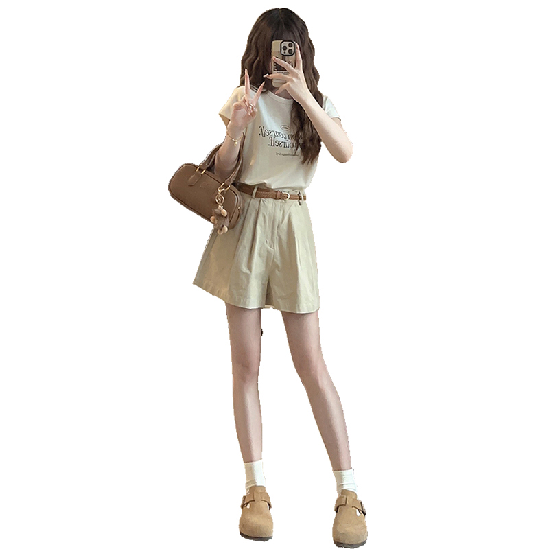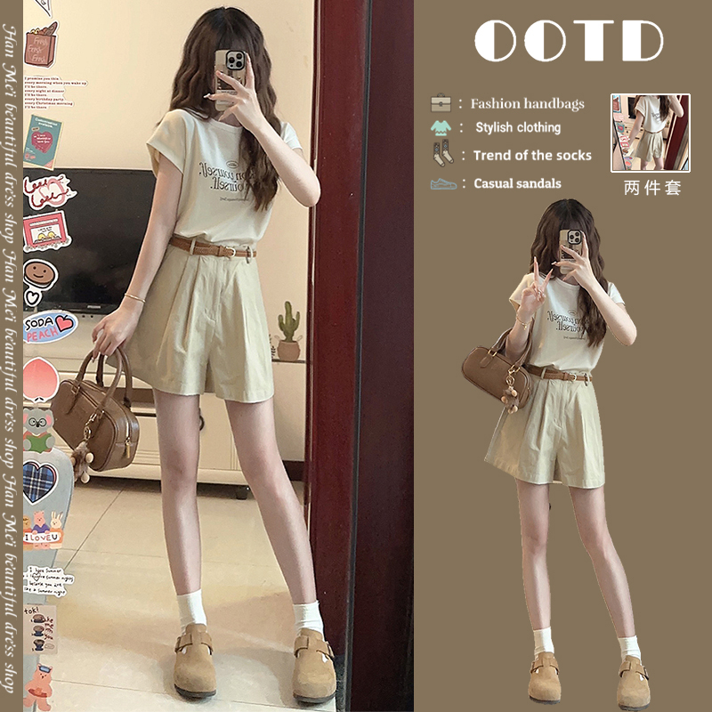夏天搭配一整套时尚小个子显高穿搭茶系减龄炸街短裤套装女夏季装
