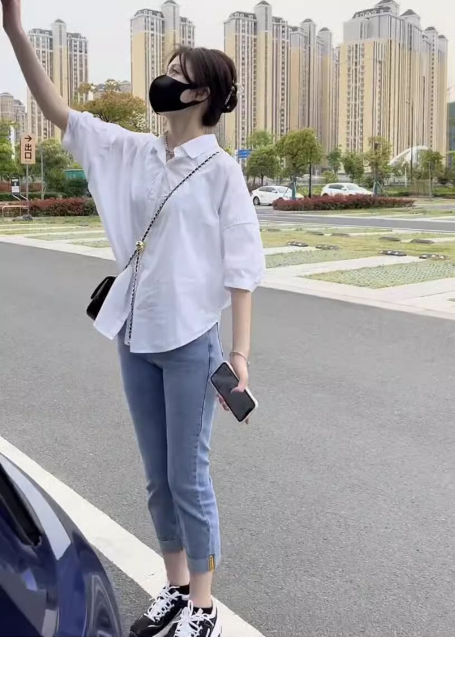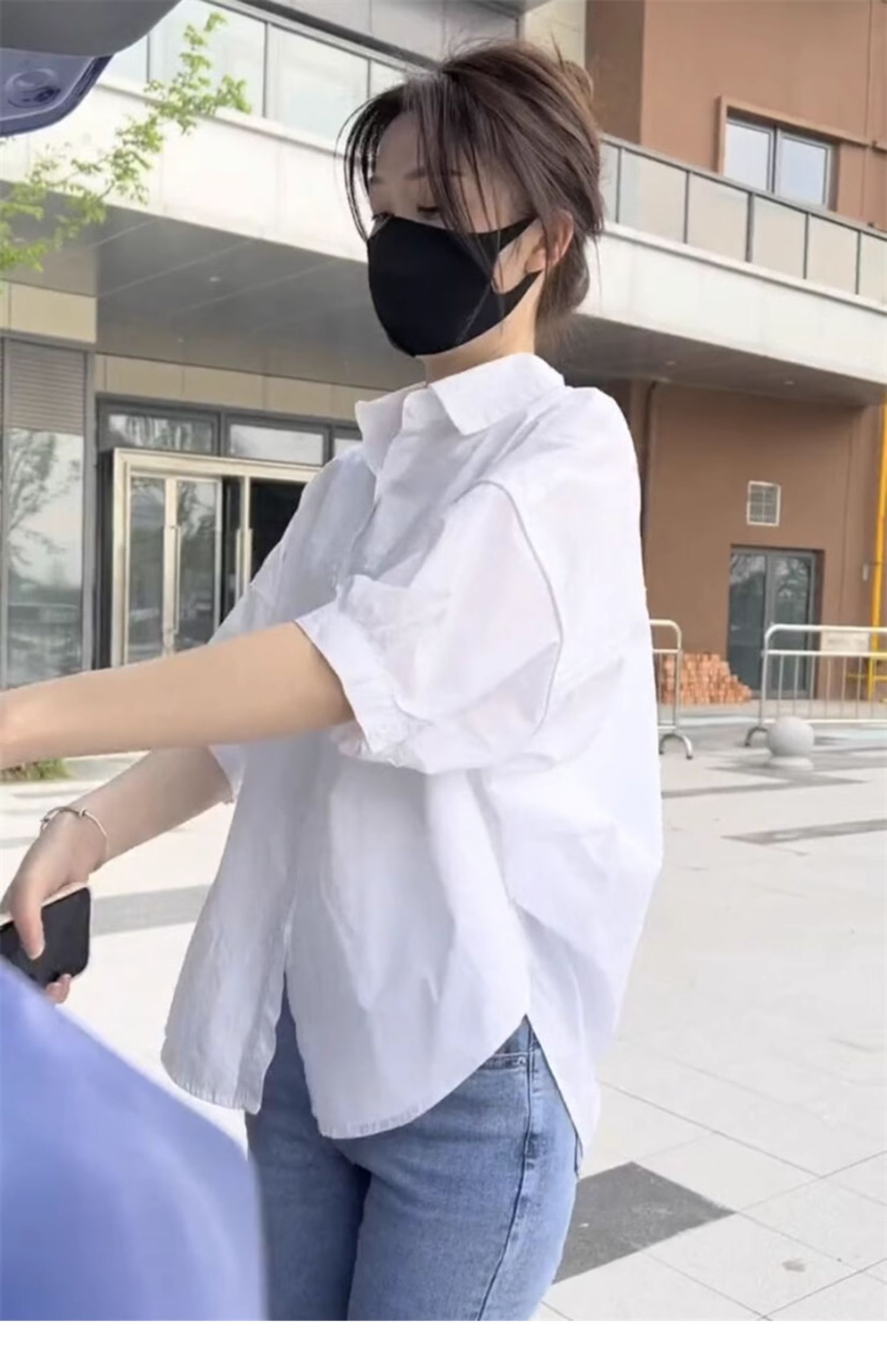 女装2025新款春季衬衣女防晒衣小个子外搭宽松白衬衫女士休闲小衫