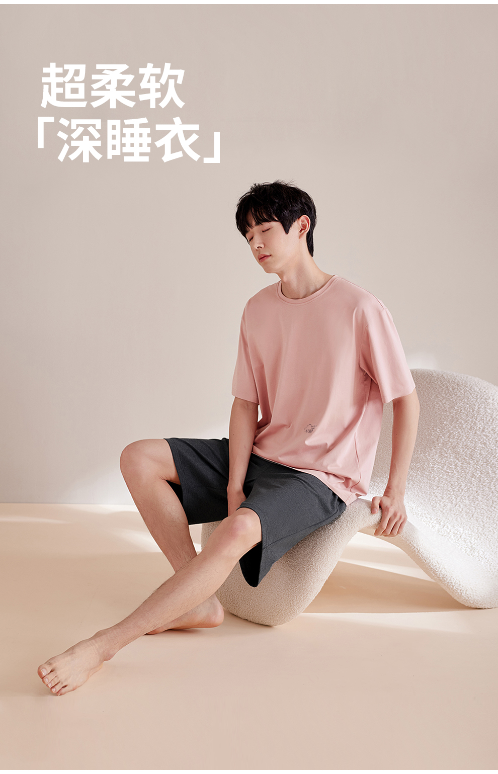 静韵【凉感深睡衣70】超柔软睡衣男款夏季抑菌防螨短袖家居服套装
