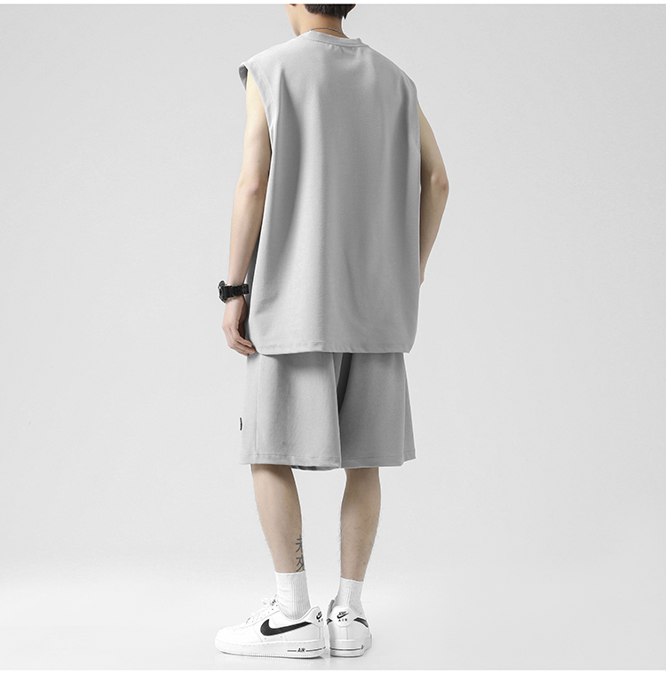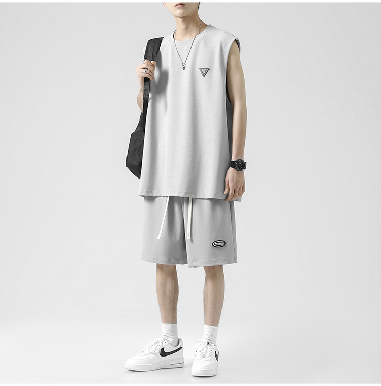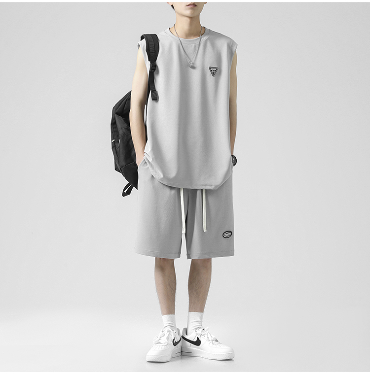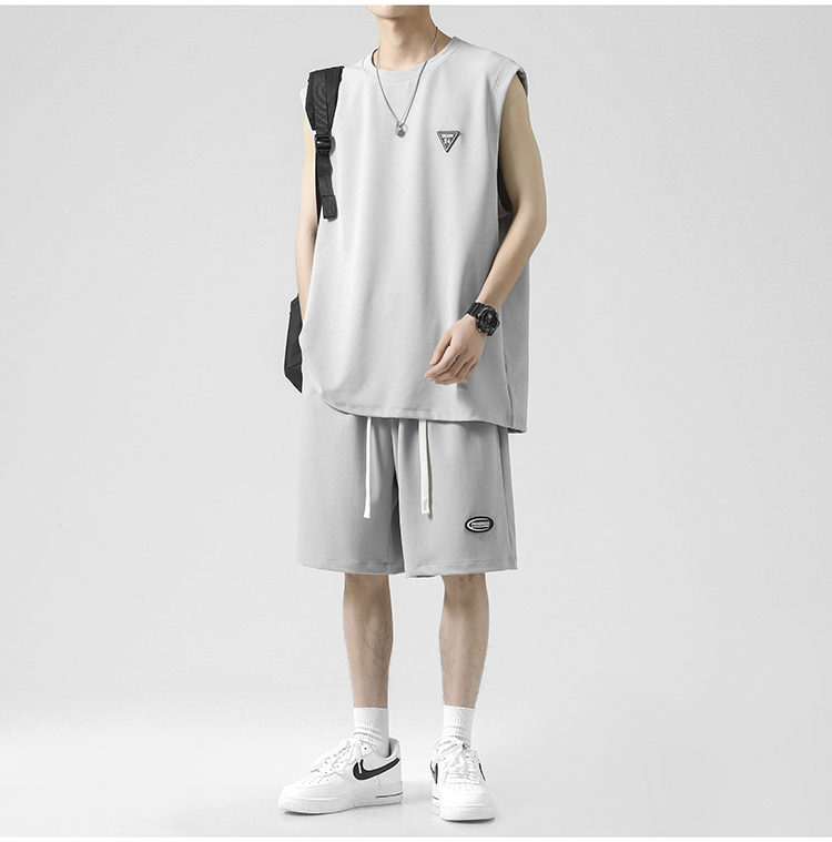 无袖t恤男士夏季薄款宽松冰丝短袖速干篮球衣服背心休闲运动套装