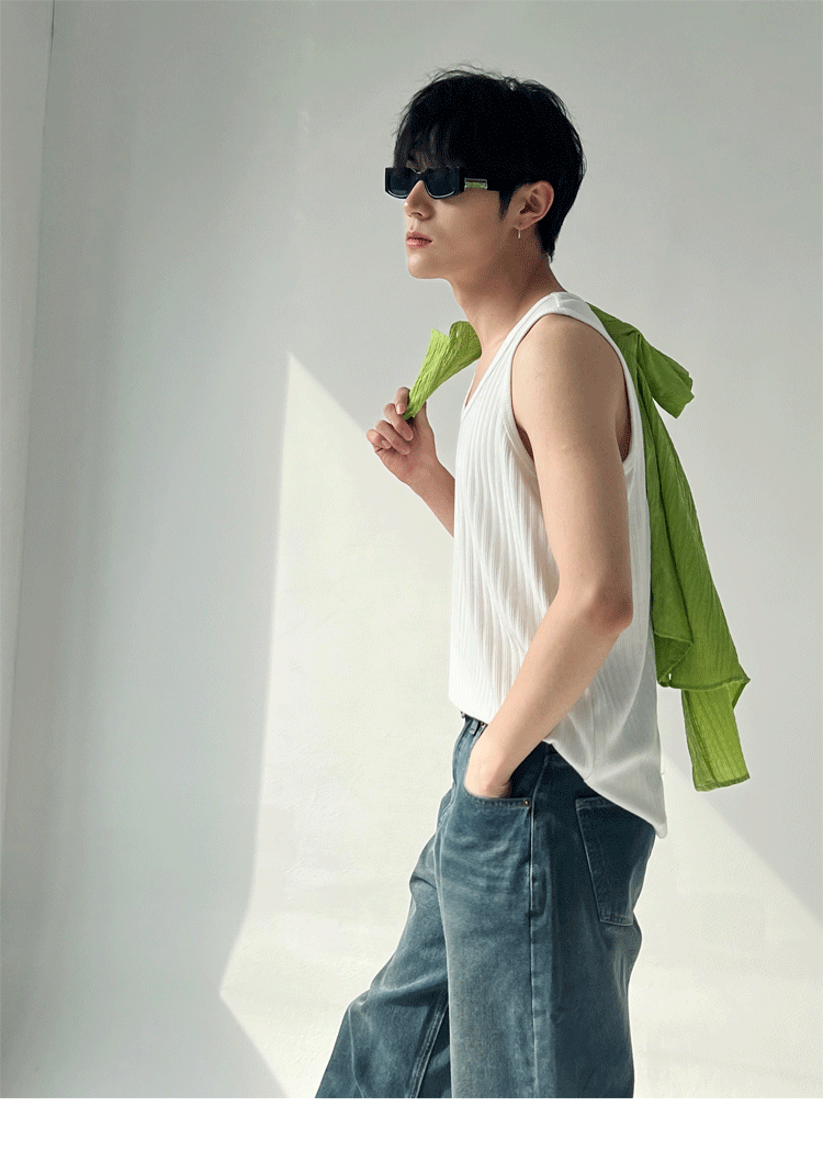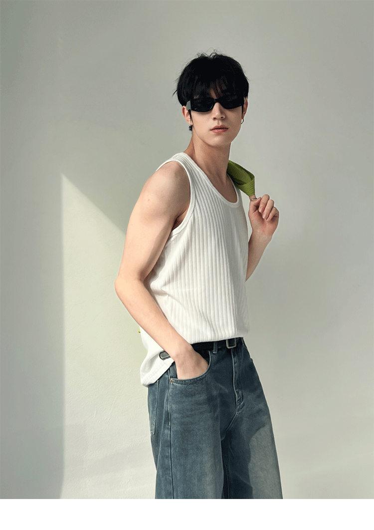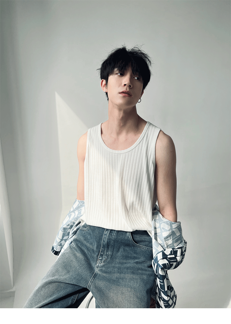 地平线男装 夏310g高克重坑条男女休闲纯色基础款肌理汗背心坎肩
